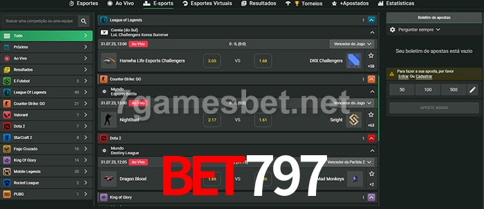 O Bet797 oferece uma grande seleção de opções de apostas em e-sports com probabilidades competitivas